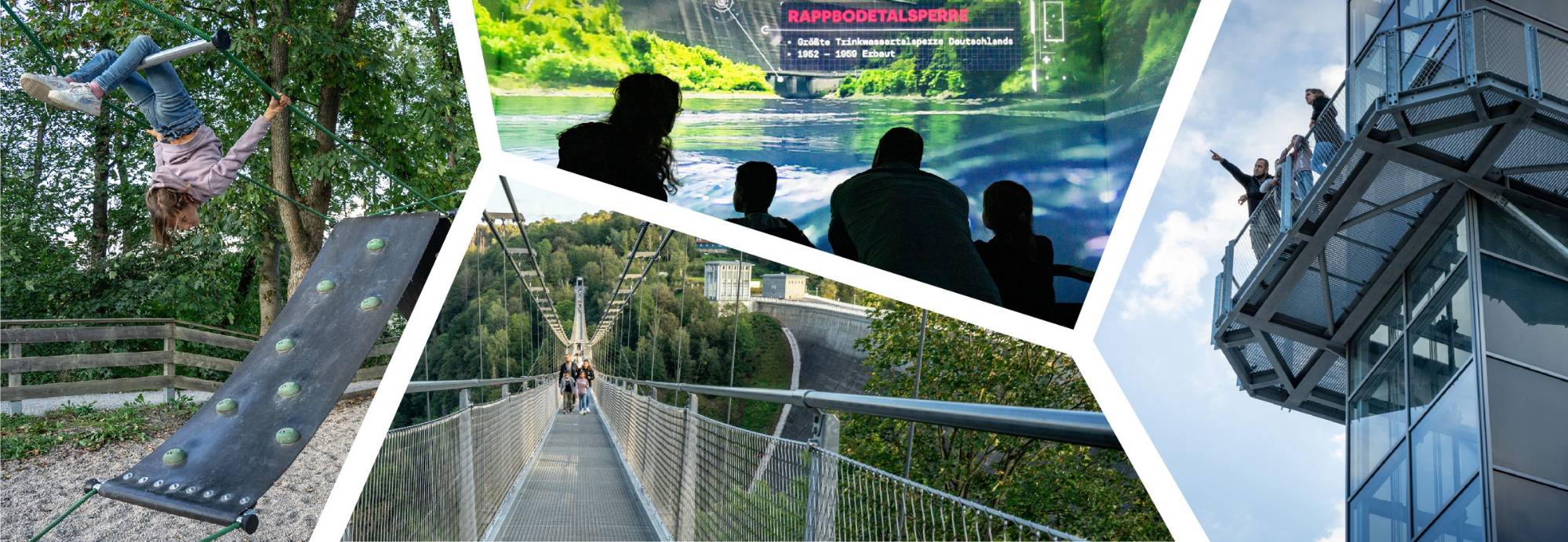 Ein Spaziergang รผber die Hรคngebrรผcke TITAN RT mit einer Lรคnge von 458 m, der Ausblick vom Aussichtsturm Solitair, das 5D-Kino mit Professor Fallwasser, eine Jeep-Safari, sowie ein VR-Adventure und Indoor-/Outdoorspielplรคtze sorgen fรผr ein abwechslungsreiches Familienprogramm der Extraklasse. Das Ganze gebรผndelt in attraktiven Kombitickets ist unser Ausflugsort an Vielfalt kaum zu รผbertreffen.