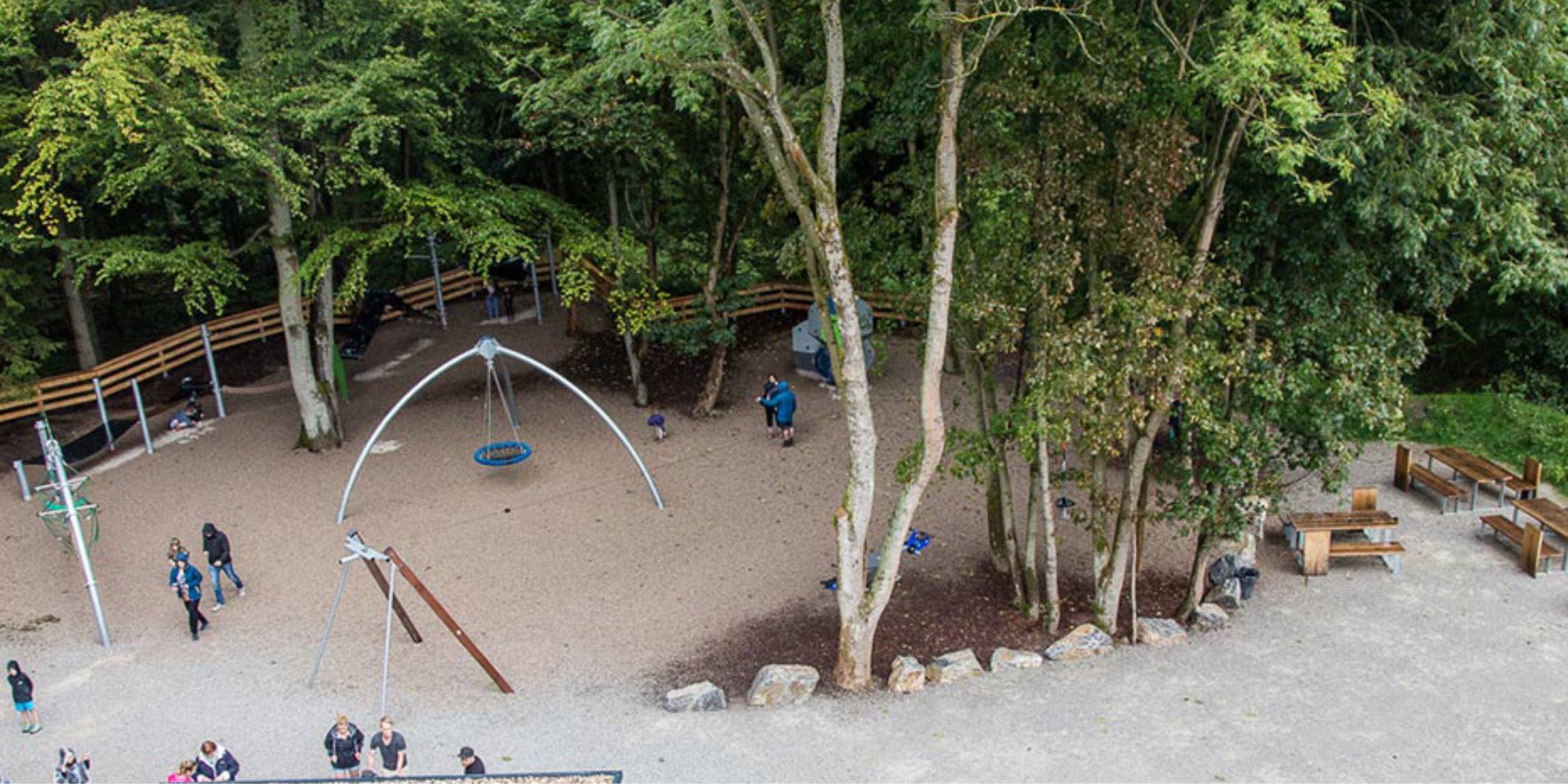 Unser mit Liebe zum Detail gestalteter Outdoorspielplatz ermรถglicht unseren kleinen Gรคsten die Adrenalinevents der Groรen in Miniausfรผhrung zu erleben. Die kleinen Harzdrenaliner kรถnnen auf der wackligen Hรคngebrรผcke entlang balancieren, sich am Kletterwรผrfel austoben oder mit der Seilrutsche รผber den Kiesboden gleiten.